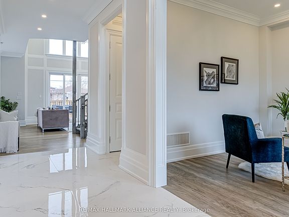 Breathtaking Custom-Built Residence Nestled In Oakville's Highly Coveted Bronte Neighbourhood. Offering over 3,300 sq. ft. of luxurious above-grade living space, plus a fully finished walkout basement, this architectural masterpiece seamlessly blends modern elegance with timeless design. Soaring 10-foot ceilings on the main level, 9-foot ceilings on both the second floor and in the basement. From the moment you step inside, you'll be captivated by the grandeur & attention to detail that defines this remarkable home. Expansive, sun-filled principal rooms flow effortlessly, enhanced by exquisite craftsmanship, coffered ceilings, & refined moldings throughout. The open-concept design strikes the perfect balance between comfortable family living & elegant entertaining. Enjoy a chef-inspired kitchen featuring premium built-in appliances, custom cabinetry, & a walk-in pantry with a dedicated server room. The kitchen Overlooks the dramatic 20-foot open-to-above family room. A formal dining room and a sophisticated home office further elevate the home's functionality and style. Retreat to the serene primary suite, an opulent private haven complete with a custom walk-in closet, a spa-inspired ensuite with a deep soaker tub, glass-enclosed shower, and a private balcony encased in glass, offering peaceful views and ultimate privacy. The second bedroom features its own ensuite, while the third and fourth bedrooms share a well-appointed Jack-and-Jill bathroom. A spacious second-floor laundry room adds convenience & thoughtful design to the upper level. Located just steps from Lake Ontario and a mere 2-minute drive to the prestigious Appleby College, this exceptional home provides unrivaled access to top-tier schools, scenic waterfront trails, and Oakvilles finest amenities. Whether you're searching for your forever family home or a luxury investment, this one-of-a-kind property delivers the perfect blend of location, lifestyle, & refined living.