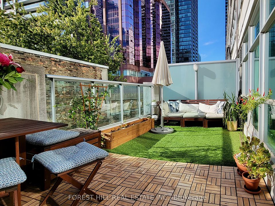 Welcome to The Soho Metropolitan in the heart of downtown Toronto. This bright, spacious one-bedroom suite is a rare find, offering 615 sqft of refined living space plus an expansive private terrace of nearly 200 sqft - perfect for morning coffees, sunset cocktails, or al fresco entertaining.Flooded with natural light through floor-to-ceiling windows with unobstructed western exposure, the functional wide-open layout seamlessly blends comfort and style, with generous space for living, dining, and entertaining.The large BBQ-friendly terrace is a unique feature at Soho Metropolitan, overlooking a small, non-busy street and park-offering the best of both worlds: private outdoor oasis, yet steps from everything downtown has to offer.As a resident, you'll enjoy five-star hotel amenities including the exclusive Soho Fitness Centre with towel service, steam rooms, indoor pool, hot tub, and private rooftop terrace, plus 24-hour concierge and direct access to Moretti Café.Located steps from King West, Queen West, Rogers Centre, CN Tower and the Financial and Entertainment Districts, this address delivers the ultimate downtown lifestyle. With a 96 Walk Score, 100 Transit Score, and 90 Bike Score, every convenience is at your door. All utilities and hotel amenities are included in the condo fees making this residence not only luxurious but exceptional value.