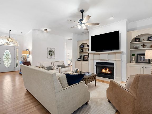 - Ceiling Fan(s), Tray Ceiling(s), Fireplace, Ceiling - Smooth, Solid Surface Counters, Bookcases
