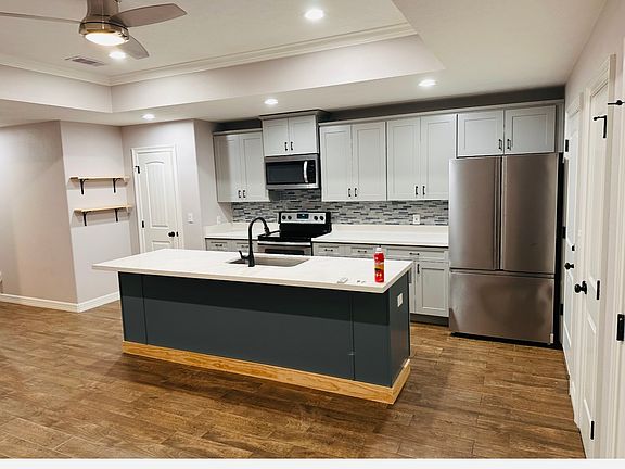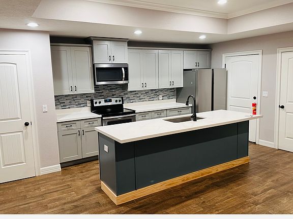 Large backyardWood grain tile floorsQuartz countertopsWalk-in master closetComplete appliance packageLarge kitchen islandBronze finishes
