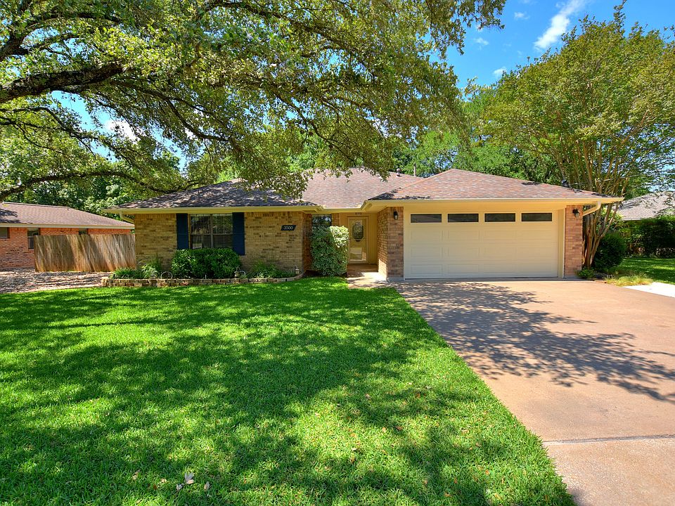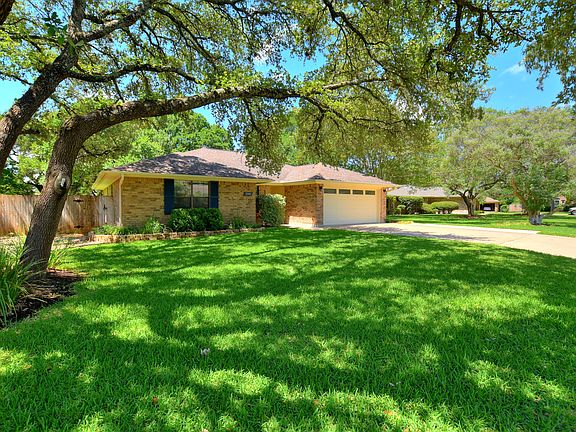Park-like setting with mature trees on .295 acres. 3-2-2 Vinyl plank & carpet. Kitchen updated with custom cabinets, granite counters, tile back-splash, updated black appliances. Pantry. Private Master Suite with double closets and double sinks. Walk-in shower. Two bedrooms and full bath up front with tub/shower combo. Automatic sprinkler system. St. Augustine grass/crepe myrtles. Privacy wood fence. Storage building 10 X 16. Covered back concrete patio. Double gate entry side Guttering. 3 sides brick.