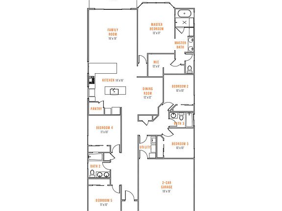 MODEL HOME/ NFS! The Tulip: A spacious 5-bedroom, 3-bathroom single-story home with 2,150 sq ft of thoughtful design. The kitchen features granite countertops, pot filler, apron sink, and upgraded lighting—flowing directly into the open living and dining spaces. The primary suite offers a full bath and ample closet space, while one secondary bedroom includes its own private bath. A 2-car garage is also included.