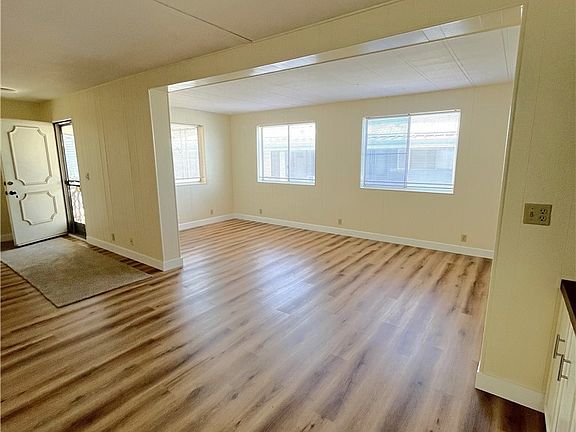 Welcome to Villa Magnolia, a 55+ Gated Community in the city of Riverside. This 2 bedroom and 2 bathroom has upgrades both on the interior and exterior. A beautiful kitchen that opens to the large living room has new cabinets, quartz countertop, sink, faucet, and stainless steel appliances: built-in microwave oven, oven/range, dishwasher, and refrigerator. The home is bright and airy with new interior paint and laminate flooring throughout with carpet in the (2) bedrooms, both bathrooms have quartz countertops, new fixtures, and new toilets. A laundry area is off the kitchen and is equipped with hook-ups for a full-size washer and dryer. The home also has central a/c and heating, a large carport, and a low maintenance yard. Don't let this opportunity pass you up. Villa Magnolia is close to Kaiser, shopping, and freeways.