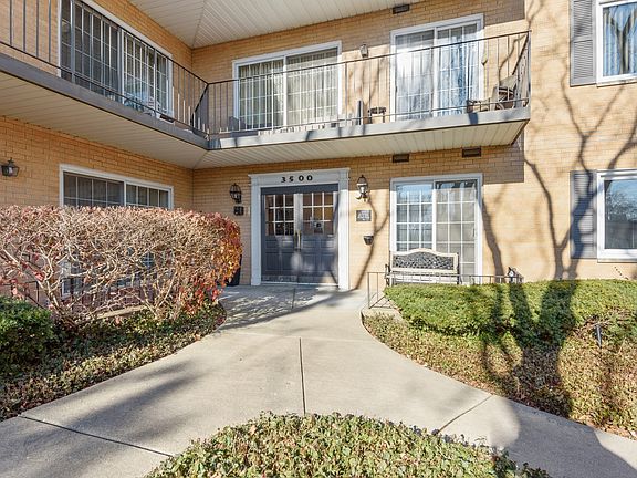 Bring your decorating ideas to this spacious condo. Largest two bedroom floor plan in building. Foyer with larger entry hall closet. Double open concept living room allows for both causal and formal living areas. Spacious L-shaped dining area and adjoining galley kitchen with breakfast area. Access sunny balcony from both living room and kitchen. Full hall bath and laundry closet with additional storage. Two huge bedrooms that each offer walk-in closets. Primary suite offers ensuite bath. This is a great opportunity to get into a wonderful building! Please note this property is being sold as-is. Garage #35 Storage #402. No Rentals 100% owner occupied. No pets.