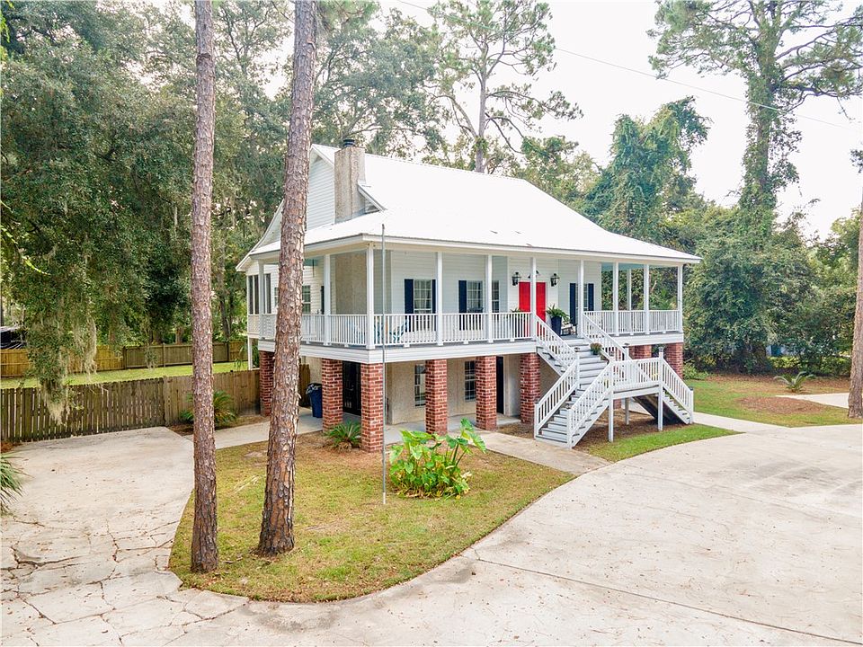 Welcome to this beautiful, raised Lowcountry-style home, perfectly blending classic southern charm with modern versatility. Nestled on a quiet, tree-lined street, this home offers serene privacy while keeping you just minutes from the beaches of St. Simons Island, shopping, dining, and easy access to the interstate.