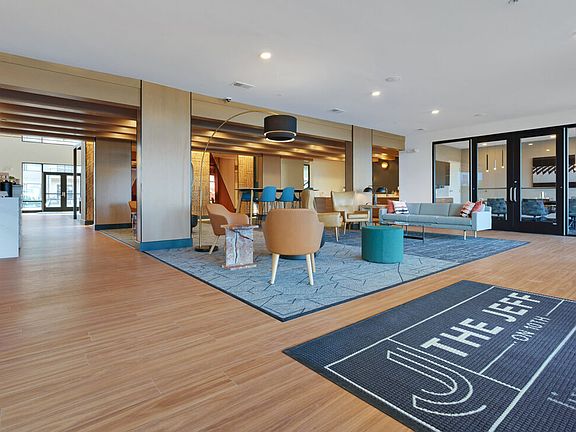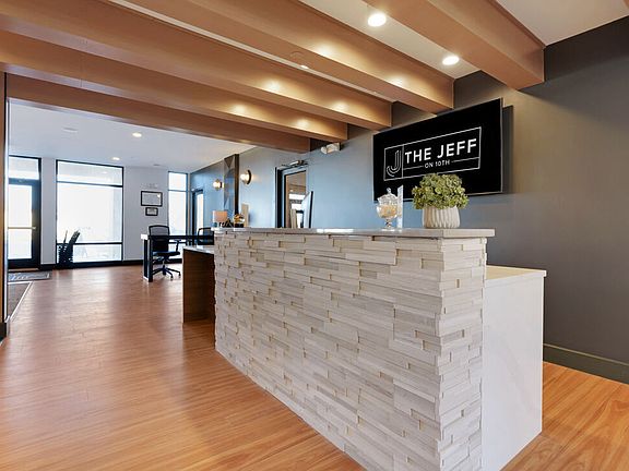 Welcome to The Jeff on 10th, a pet-friendly apartment community offering studio, one, and two-bedroom apartments designed with your comfort in mind. Our residences feature modern amenities such as kitchen islands, stainless steel appliances, double vanities, and ample storage space. Residents can enjoy a range of community amenities, including a fitness center, bicycle storage, swimming pool, and game room. Conveniently located in Jeffersonville, IN, our community provides easy access to a variety of local attractions. Explore the vibrant dining scene with nearby restaurants like Harry's Taphouse & Kitchen, Cast Iron Steakhouse, and The Red Yeti. Enjoy shopping and entertainment options in downtown Jeffersonville, known for its boutiques and the Big Four Bridge, a popular spot for walking and biking. Experience the perfect blend of luxury and convenience at The Jeff on 10th.