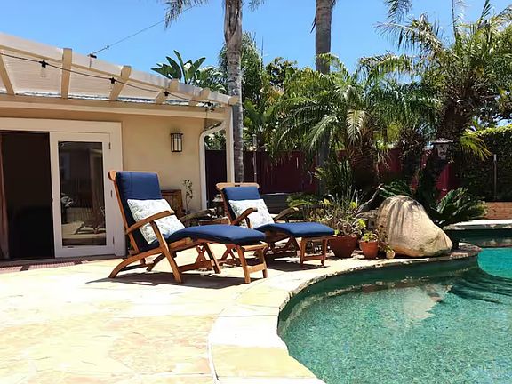 Welcome to your resort sanctuary in the coveted TRW tract neighborhood in North Redondo Beach. A unique place with large lots, curbed extra wide streets and sidewalks on both sides. Feel like you're on vacation in your own backyard. Relax to the tranquil sounds of the waterfall and the koi pond. Or host friends in the backyard. The covered trellis is a perfect place to enjoy time outdoors with family. BBQ on the gas grill which also includes a bar sink and dual side burner. Or simply take a dip in the large resort style pool and Hot Springs hot tub. Centrally located to beaches, restaurants, shopping, and convenient access to the freeway and LAX airport. The main house (1,100 SF) has two bedrooms, one full bath and a bath. Amenities include: Samsung efficient heating and cooling mini split system in the living room and bedrooms, Viking range, new Fisher & Paykel dual drawer dishwasher, wool carpet in one bedroom, hardwood and tile floors. A detached bungalow (350 SF) has one bedroom, a bath, kitchenette and built in wood cabinetry in the living room with vaulted ceilings. Natural stone shower with a frameless glass shower door. Glass tile wall and Murano glass bowl in the bath. It also has direct garage access from the bungalow. Perfect for a college aged child or parent. Amenities: EV Charging Level 2 electric car charger Removable child safety fence for pool Fully integrated professional outdoor lighting House will be undergoing renovations and will be available mid-February. Can be delivered fully furnished or partially furnished for an extra fee. Owner pays for pool, hot tub and koi pond maintenance as well as landscaping. Renter pays for utilities, including but not limited to water, electric, gas, internet and cable or streaming services. No smoking indoors. Sub-leasing or short-term rentals prohibited. Additional photos of the main house will be available January 28th. Main home is undergoing interior paint and wood floor refinishing. Property will be ready mid-February although move-in date can be flexible. Let's talk.
