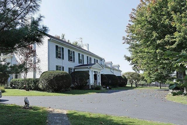 Two story Federal style brick home on 6 fenced acres of beautiful land. Gracious inviting foyer, living room with working (wood burning) fireplace,library with gas logs beautiful dining room w/china closet ornate mantel, sun room with wet bar overlooking brick patio and grounds,spacious kitchen w/walk in pantry,viking range,first floor and second floor owners suites w/dressing rooms, jetted tubs in all 3 full baths. Three stairways to second floor. Numerous other details regarding this well known Woodford County treasure. Outdoors you will find the pictureque creek w/brick springhouse, attached garage, plus detached garage which also serves as additional living/studio/office space and also has pull down stairs to attic. Sweet garden cottage with porch, nice newer barn, paddock with run-in shed, heated lap pool, pool house,sun trap. Additional information about this home can be found with the Seller Disclosure of Property Condition. Beautiful! Rare Opportunity!