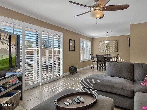 Welcome your fully furnished private villa w/ golf course view! Excellent location central to everything great Scottsdale has to offer. This comfortable and modern condo has it all. Two bedrooms 1 bath full kitchen with granite countertops, travertine floors, and in unit washer/dryer. Community contains two pools and spas, BBQ grills, fitness center, yoga studio, laundry facility, and more.