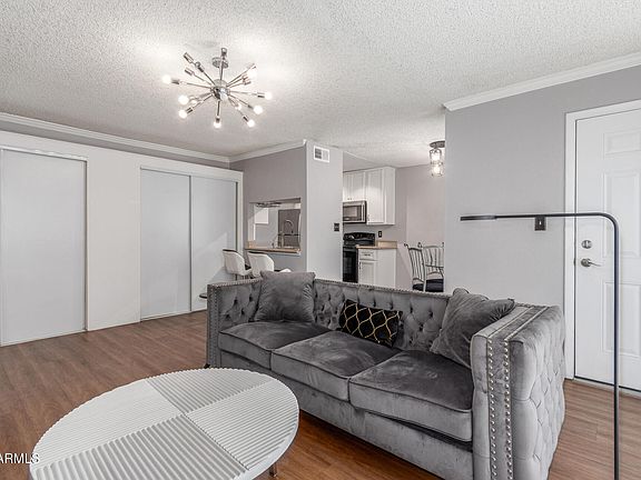 Welcome to Sunrise Condominiums in the heart of Scottsdale! This beautifully updated 1-bedroom, 1-bath end-unit offers the perfect blend of comfort, convenience, and style. Located just steps from Old Town Scottsdale, this ground-level unit features an open-concept layout with waterproof wood-look flooring throughout, a spacious living area, and a large private patio with direct access from the parking lot ideal for easy entry and entertaining. The kitchen is fully equipped with stainless steel appliances, refaced white soft-close cabinetry, a smart microwave, and filtered water at the sink. Additional highlights include dual-pane tinted windows, a smart thermostat, and a nearly new in-unit GE stackable washer/dryer set. Residents enjoy resort-style amenities including two heated pools and spas, a fitness center, yoga studio, mini movie theater, and community clubhouse. Water, trash, and sewer are included in the HOA dues. Walk to Continental Golf Course, Scottsdale's famous greenbelt, shops, restaurants, and Spring Training games. Don't miss this turnkey opportunity in one of Scottsdale's most walkable and vibrant communities.