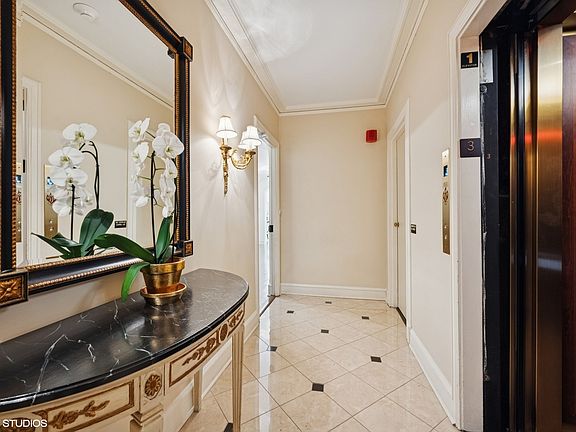 A rare gem situated on Lake Shore Drive, this exquisite home, originally built in 1926, sits on one of the most cherished blocks in Lakeview. No detail was spared during the extensive restoration. This home has been artfully restored using classic traditions and quality materials to last for centuries to come. The elevator opens to a private foyer servicing 2 residents per floor. As you enter unit 3C, a gracious gallery with arched ceilings greets you and opens into all entertaining rooms starting with the expansive, graceful living space featuring high ceilings and elegant crown molding. Additional features include a working fireplace with a period marble surround, arched doorways, bookcases, gorgeous hardwood flooring, and plenty of windows wrapping the SE corner allowing abundant light. The arched doorway leads you to an inviting den/family room with a neutral pallet that exudes peace and relaxation. Off the den is the enormous windowed eat-in chef's kitchen has custom white cabinetry, Sub Zero refrigerator, Viking cooktop and oven and Miele dishwasher. New white quartz island counter and gorgeous pendant lighting. The original butler's pantry was restored to perfection for today's living and provides additional storage. The kitchen flows directly onto an inviting den/office with full bath. Get ready to entertain in the formal dining room - rich with red tones and a gorgeous crystal chandelier, this dining room is a true entertainers dream. The main hallway leads you to two handsomely proportioned ensuite bedrooms, both with beautiful light and tree top views through the large windows. Fall in love with the primary suite - this grand bedroom features glorious east facing windows, large, organized closets, and generous space allowing a king bed. The en-suite primary bath is a glamorous sanctuary. This home offers over 3,500 square feet of pure luxury. There is a separate laundry room with a full-size stackable washer and dryer, extra storage, and a full-service staff ready to make life easy and enjoyable. All new windows installed 2023. Perfectly situated in the heart of one of the most exclusive neighborhoods in Chicago, 3500 Lake Shore Drive is a prewar white-glove boutique co-operative offering one of the best roof decks in the City with views of the Lake, boats in the harbor, Clock Tower, Wrigley Field, and the Loop. There is a full catering kitchen, party/dining room and bath, BBQ grills, beautiful wrought iron tables, chairs and umbrellas and lush landscaping. A truly exquisite home. Parking available nearby