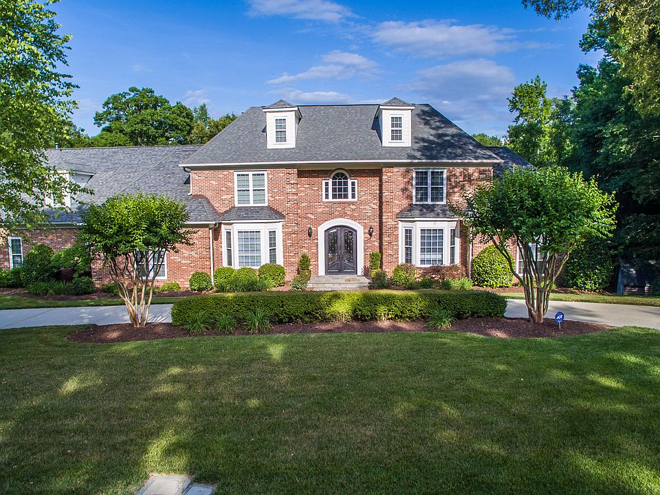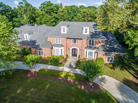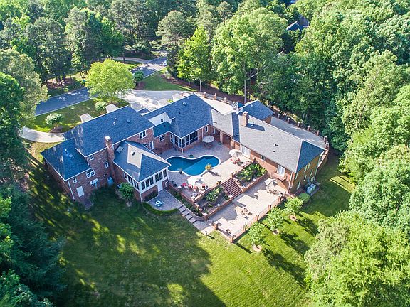 This magnificent all brick custom home on 1.87 acres features a separate 2BR/2BA guest house, 4-car garage, and 2000 sf. of gathering space below the guest house that could be used for hosting large events or would make an ideal office, gym, rec. room, or studio. Multiple outdoor living spaces make this home an entertainer's dream and include an enormous covered brick patio w/ vaulted ceiling, vented outdoor fireplace, and pool. Chef's kitchen features Sub-Zero refrigerator & freezer full size built-ins, Thermador appliances, custom cabinetry and granite. Beautiful hardwood floors gleam throughout the entire 1st floor. Family room, sunroom, kitchen, breakfast area & screen porch overlook the pool. MBR on the main boasts a beautifully remodeled bath and huge walk-in closet. A 2nd MBR plus 2 BR, 3 full BA, and large bonus room are located on the 2nd floor. 5th BR/BA is on the 3rd floor. This home has it ALL and sits on a tranquil private lot with gorgeous panoramic wooded view.
