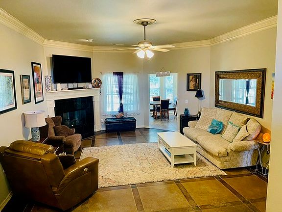 This motivated & ready seller is offering a beautiful 3 bedroom, 2 bath home with features designed for both comfort and style. The spacious primary bedroom boasts a tray ceiling and a cozy workspace cubby, while the ensuite bath includes double sinks, a jetted tub beneath a glass block window, a separate shower, and dual walk-in closets. Guests will be welcomed into a home with 10-foot ceilings, detailed crown molding, and an open layout perfect for entertaining. The living area features a gas fireplace with marble tile and a decorative mantle, flowing seamlessly into a kitchen filled with natural light, stainless steel appliances, ample cabinetry, and an eat-in space. The split floor plan adds privacy, and outdoor living is just as impressive—enjoy two mature plum trees, a fenced yard, an above-ground pool, and a charming stone chimney-style outdoor fireplace. Bonus features include robo vacuum and one-year home warranty for peace of mind. Don’t miss this opportunity to own a well-maintained, feature-rich home!