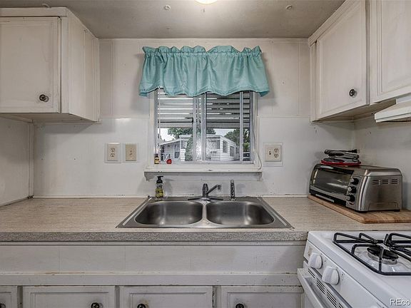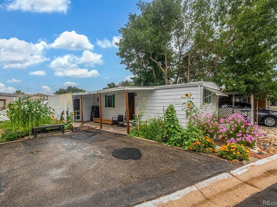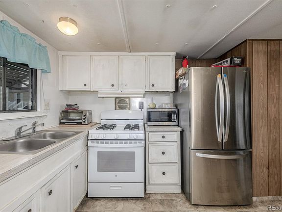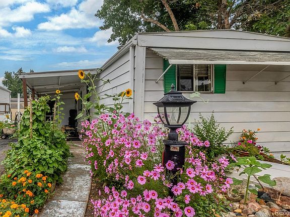 Welcome to this cozy 2-bedroom, 1-bath home tucked away in Bear Creek Village! This home offers a functional layout and great potential for those looking to add their own personal touches. The living room is light and open, leading into an updated kitchen with updated appliances including a gas range and new refrigerator, plus plenty of cabinet storage. The two bedrooms are comfortable and versatile, while the full bath provides everything you need with additional room for updates to make it your own. A convenient laundry area adds extra storage and practicality. Outside, enjoy a large covered front patio perfect for relaxing, plus a storage addition, 2 off-street parking, and a spacious backyard with garden beds, mature trees, and storage sheds—ideal for gardening, hobbies, or simply soaking up the Colorado sunshine. This park is divinely located near parks, shopping, dining, and with easy access to major roads, this home offers an affordable opportunity to own in Denver.