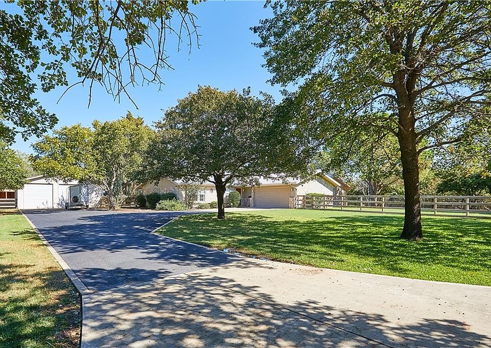 REDUCED 20K!! Amazing one story on 1 acre in South FM. 3 bedrooms, private office and a bonus room for exercise or reading room.Less than 1 mile to Murrell Park Lake Grapevine with hiking & biking trails.Upgrades include a stunning master suite, customized master closet & luxury master bath.Custom millwork with stained alder doors & cabinets thru out this architects home.Chef's dream kitchen with Thermador appl pkg 6 burner & griddle gas cooktop range, 42 inch blt in fridge, glass front buffet & 12 ft. island for prep and dining!40 x 40 barn with office OR as addtl garage.Well for irrigation.Tankless hot water heaters Farmhouse fencing. Private setting with oaks & pecan trees. Country living in the city!