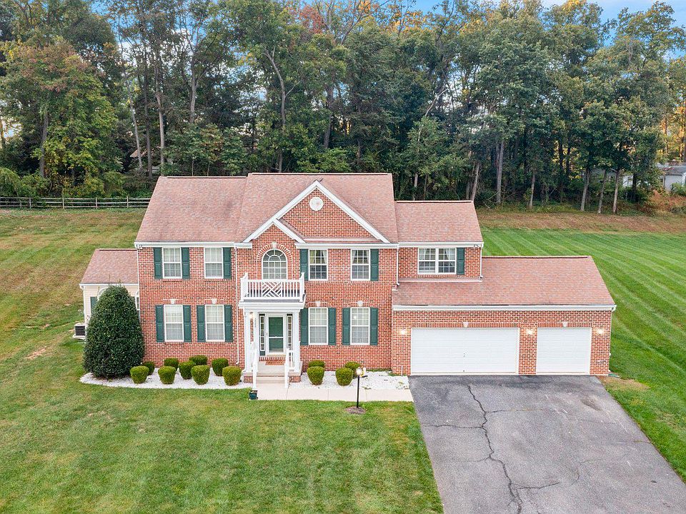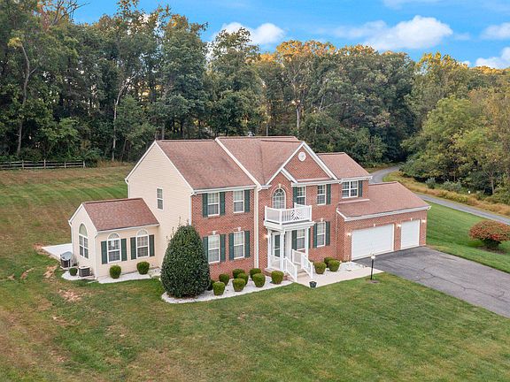 Built in 2004, this elegant 3-level residence combines timeless craftsmanship with modern sophistication, offering over 2.7 acres of privacy and serene tree-lined views. A rare opportunity awaits to own this thoughtfully designed 4-bedroom (potential 5th bedroom), 3.5-bath estate. The main level is an entertainer’s dream, featuring gleaming wood floors, a formal dining room, a sun-filled living room, a private office, and a welcoming family room with fireplace. The gourmet country kitchen boasts a center island, upgraded countertops, and table space, with seamless flow into the sunroom and breakfast area that open to the patio. A main-level laundry adds convenience, while oversized windows throughout capture natural light and frame the picturesque setting. The luxurious primary suite offers a spa-inspired bath, while additional spacious bedrooms provide comfort and flexibility for family or guests. Modern amenities include upgraded appliances, French and sliding glass doors, double-pane windows, and an integrated intercom system.