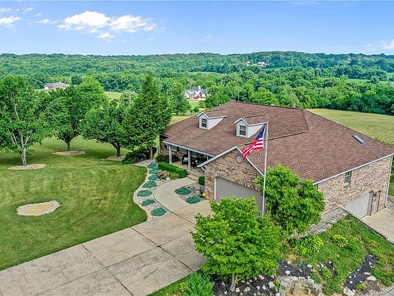 One owner & it shows! This custom built brick ranch home w/a full walk-out bsmt shows true pride of home ownership. It has a 54x56 Pole barn, 2 att garages w/ 4+ car space & a MILLION $ view of the 15 AC. If you like the rolling hills of Kentucky then you'll LOVE this property! Home has been exquisitely updated w/ new trim, batten board wainscot, LVP flooring, floating shelves & fresh paint. Master BD w/ sitting rm, deck access, remote control skylight, large walk in shower & closet. Some of the special features are heated floor in lower garage, 200 amp service, trash compactor, 180 sq ft. safe room, central vac, storage galore, covered patio & porch w/ 40x24 attic that could be finished too. Country living but close to all conveniences