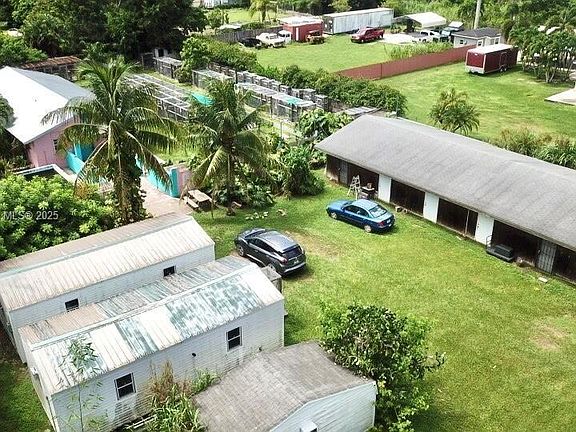 (745) Nice property situated on 1.10 acres. Perfect for those with a passion for farming or a desire for a peaceful, spacious lifestyle. The main residence is a spacious 4-bedroom, 2-bathroom house with a potential in-law of 1/1. The land is ready to accommodate a variety of animals, including horses, chickens, pigs, and pigeons. Manage a pond that can be stocked with fish, a space for parking over 30 cars, a variety of mature fruit trees, including avocado, mamey, plum, chinese mamoncillo and others, a structure that can become in 6 horse stables, and a layout that is easily convertible and could be transformed into a nursery, offices, an in-law suite for subleasing, and in a events venue. The new owner can easily obtain the AGRICULTURAL Exemption. A must-see.