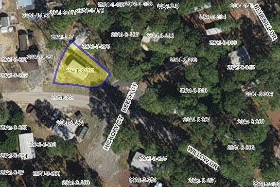 Cleared corner lot with septic, shed and new stone on parking area. Property owners have access to fishing pier, dock, playground, pool, boat ramp and more. General store located in development. Motorhome on property DOES NOT convey. Listing agent related to seller.