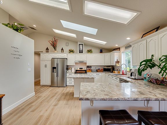 Enjoy country living at its best on this beautiful 5-acre horse property and hobby farm! This well-maintained home offers flexible living options and thoughtful upgrades throughout. The main level features a spacious family room ready for a wood stove installation and an open country kitchen refreshed with newer appliances, counters, backsplash, flooring, and paint. Luxury vinyl plank runs throughout for durability and style.The primary suite includes a cozy nook for pets, reading, or an office, plus a private bath with dual sinks and walk-in shower. Bedroom #3 is a split bedroom layout for added space. The laundry room doubles as a mudroom with shelving, storage, a sink, and its own toilet. A 16’x13’ unfinished storage room with concrete floors offers potential for another bedroom or hobby space.The lower level provides excellent flexibility with a large storage/office room featuring water and laundry hookups—ideal for a future kitchenette or laundry. A 7’x9’ room off the lower bath was designed for a dry sauna and is already plumbed. Another large space can serve as two bedrooms, each with its own closet and shared sliding door.Outside, enjoy a 16’x14’ concrete patio with hot tub, swimming pool, playground, garden, and firepit. The land is fenced and cross-fenced with rolling pasture, a round pen, and sweeping territorial views.Outbuildings include a 24’x34’ bay area with tall doors, enclosed 22’x29’ workshop, 47’x14’ area with horse stalls, 36’x48’ two-bay barn, and a large agricultural building with RV and garage storage. A 4’x6’ office off the dining area adds convenience.Recent updates include newer paint, floors, and a premium 3-part water filtration system with an added fridge filter. Move-in ready and full of opportunity to enjoy peaceful country living!
