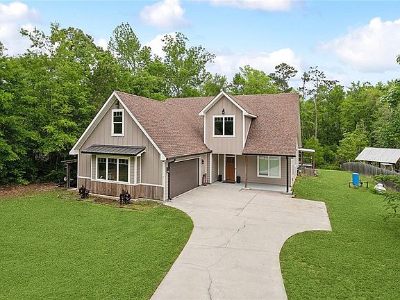Welcome to this custom-built home nestled on a peaceful dead-end street. This home offers a cohesive blend of elegance and practicality, featuring an open floor plan designed for everyday living. Step into the heart of the home and discover a chef's dream kitchen, complete with an oversized large island, slab granite countertops, and high-end appliances. Cypress cabinets and abundant kitchen storage throughout add a touch of natural beauty. The cypress doors throughout the home further enhance the rustic charm, while the cedar fireplace in the living area creates a cozy ambiance. Antique bathroom vanities and doorknobs evoke a sense of timeless charm, complementing the oak hardwood floors that flow seamlessly throughout the living space, along with the rustic charm of brick flooring in the wet areas. Retreat to the primary bathroom, where an oversized custom shower and a claw-foot soaking tub await, offering a spa-like experience within the comfort of your own home. Upscale light fixtures illuminate every corner, adding a touch of sophistication to the interior. Outside, a generously sized deck provides the perfect setting for outdoor entertaining, overlooking the view of a completely wooded area. With an extra-large garage providing ample storage space and an additional 1,200 sqft of unfinished area upstairs, this home is ready for expansion. This upstairs area is already framed in with utilities in place, this includes a den, 2 bedrooms, and a bathroom. There is also a large outdoor workshop that has electricity that could be converted into a separate living space. This layout offers endless potential and possibility by transforming the property into a 6-bedroom home with a separate unattached living suite. Plus, enjoy a private boat launch on the Pearl River for skiing, fishing hunting, and access to the nearby Bogue Chitto Wildlife Refuge. Experience living at its finest in this exceptional home and make your sportsman's lifestyle a reality. Flood Zone C.