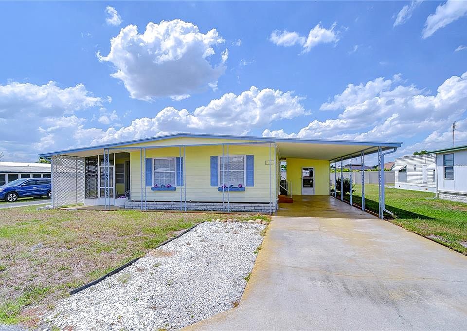 Move-in Ready! This beautifully renovated two-bedroom, two-bath doublewide mobile home is in the 55+ community of Zephyr Shores. The seller has updated the property, making it a true turnkey home. In 2022, both the kitchen and bathrooms were completely remodeled, featuring new appliances that bring modern convenience to your fingertips. Additional upgrades include a new water heater and air conditioner, ensuring comfort and efficiency. The roof has been coated with a protective barrier, and the entire home has been repainted inside and out. An attached bonus room, equipped with a wall-mounted AC unit, provides extra living space not included in the square footage, alongside an attached screen room for enjoying the Florida weather. The home is offered partially furnished, adding to the convenience of moving in. One of the key benefits of this property is that you own the land—no lot rent! On the west end of park is a dock and pond. The current HOA fee is a reasonable $600 per year, granting you access to the recreational facilities, pool, and a variety of activities. Come and see this gem for yourself. You won’t be disappointed!