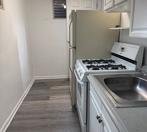 Modern paintFresh new flooringIn-unit washer and dryerOversized bedroomsQuiet well-maintained buildingGenerous closetsCute functional kitchen