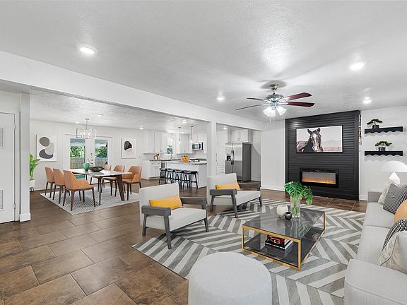 Modern upgradesDecorative electric fireplaceMature oak treesOpen floor planWood flooringSpacious lotCozy charm