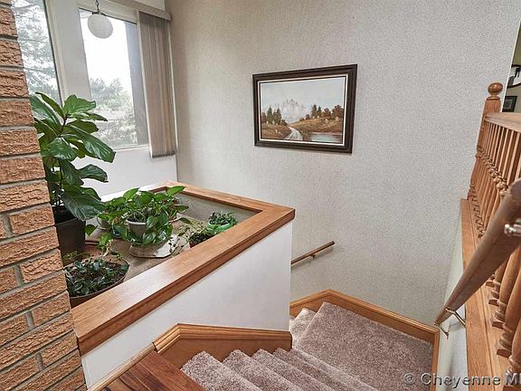 Unique Eastridge Property! Gorgeous Acacia hardwood flooring! Windows everywhere allow plenty of natural lighting! Large kitchen and dining area! 2 highly functional wood fireplaces heat the entire home! Main floor family room with wet bar area perfect for your friends and family gatherings! Huge drive-under garage! Corner lot with immaculate landscaping and mature trees! Storage Shed! Large patio with included gas fueled grill! Central A/C! Solid and low maintenance brick and metal exterior. Amazing!