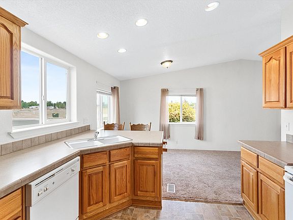 Low-maintenance yardCovered patioVaulted ceilingsSpacious primary suiteKitchen with wood cabinetsCovered carportCorner lot