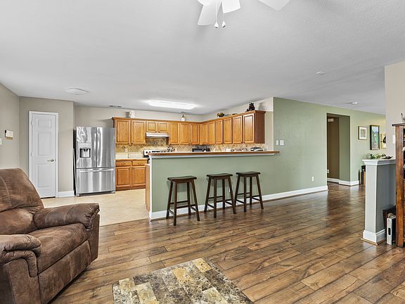 Check out this wonderful 5 bedroom, 3.5 bath home in quiet subdivision with NO HOA! Extra large great room with laminate floors. Cozy living room with decorative stone wood burning fireplace that is open to kitchen. Kitchen features lots of cabinets and countertop space, pot filler above stove, tile floors and pantry. Main floor master suite includes soaking tub, separate shower, dual sinks and walk-in closet. Upper level boasts LARGE family room, 4 additional bedrooms and 2 baths. Lots of space for family! Exterior space, which is perfect for entertainment, includes brick wall area with awning, deck and fenced yard. Nice corner lot! Contact us for a virtual tour of the home.