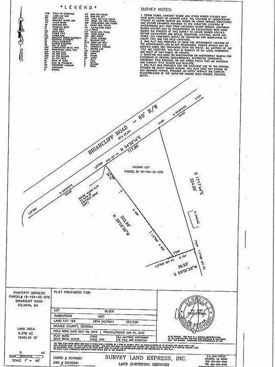Build your own custom home. In desirable Oak Grove elementary district, just down the street from Toco Hills Shopping Center... Vacant lot on Briarcliff Road, 0.4 Acre. Lot has a CONVEYED EASEMENT for sewer line. See Docs - warranty deed spells out the conveyed sewer easement.