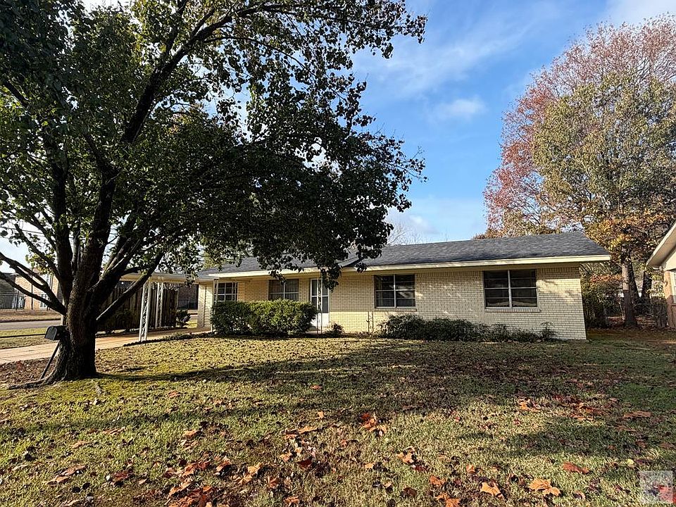 New Roof in 2025, Water Heater & Furnace appear to have been replaced in 2015. Fireplace is a freestanding, electric unit that will remain. It is currently in the den, can be moved to any other room. There is a spacious front living room with a coat closet. There are a few repairs that are in the process of getting doneWater damage in Master bedroom and den ceilings from before roof was replaced will be repaired/painted. Microwave and stove do no work, can negotiate replacement. Seller is having 2 new toilets installed as well as a new garbage disposal. Refrigerator remains. Carpet in bedrooms & living room, vinyl in kitchen, den and baths. Extra Storage space in the window box seats in den. The den ceiling has wood beams. There is a single car metal carport and a metal covered patio on the back. Back yard is fenced with chain link. There is a single walk gate as well as a double gate for getting lather items in and out. Storage building is 8' x 12'.