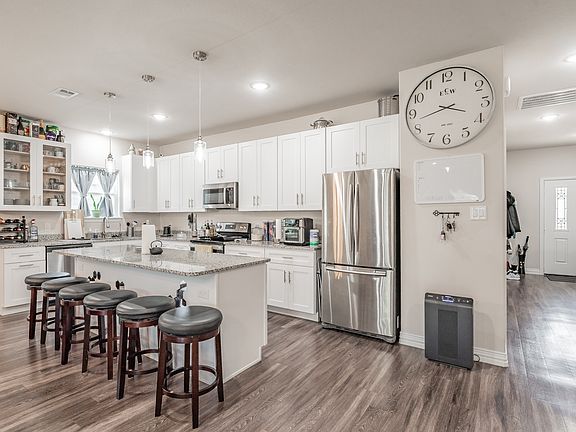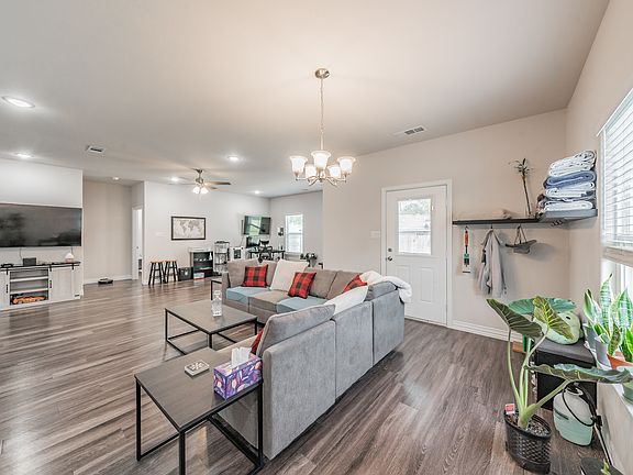 House built in 2021, appears like new. Open concept floor plan, kitchen equipped with all appliances, including a refrigerator. The master bedroom is opposite end from the other bedrooms. The house sits on a corner lot, which offers a large backyard. The interior offers many upgrades throughout. The exterior is well-lit with additional lighting. Pet friendly