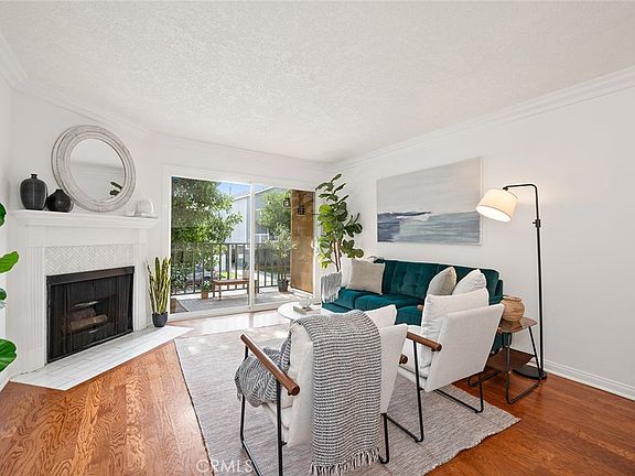 Discover your coastal sanctuary just minutes from the beach with this 2-bed, 2-bath gem. As you step into the freshly painted interior, you're greeted by beautiful wood floors that extend throughout, leading you into a kitchen adorned with granite countertops, refinished cabinets, and a spotless stainless steel refrigerator. With plenty of natural light, the living area connects to an expansive patio through dual pane sliding doors, creating an effortless indoor-outdoor flow. Crown molding graces the beautifully textured walls, adding a touch of elegance to every room. Cozy up to the gas fireplace for warmth and ambiance during the upcoming winter months. The bedrooms with no shared walls offer walk-in closets for ample storage, and the bathrooms boast custom tile flooring and details for a luxurious finish. Embrace the Southern California lifestyle in your covered outdoor living space. Convenience meets comfort with an elevator, designated parking, and in-unit laundry. Pet-friendly living is enhanced with a private dog run in the complex. Ideally located minutes from the beach, freeways, CSULB, Belmont Shore, Naples, golf courses, parks, downtown shopping, and dining, this residence offers the perfect blend of tranquility and accessibility. Don't miss the opportunity to make this meticulously maintained retreat your home – coastal living awaits!