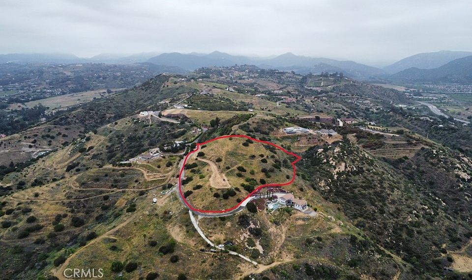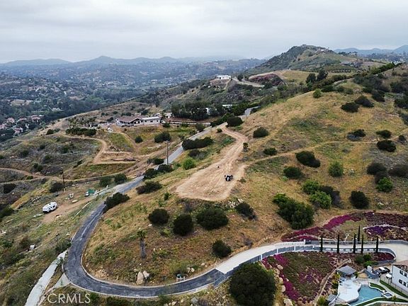 Lot with elevation and views!! 5 acre build site with all the key components needed to build your own home. Eagle views toward the ocean to the West and Mountains to the South over the San Luis Rey Valley Riverbed. Multi Million dollar homes all round. All custom homes. This site has a small viewing pad in the area that the house pad would be located. 1" water meter installed. Fire hydrant on site.
