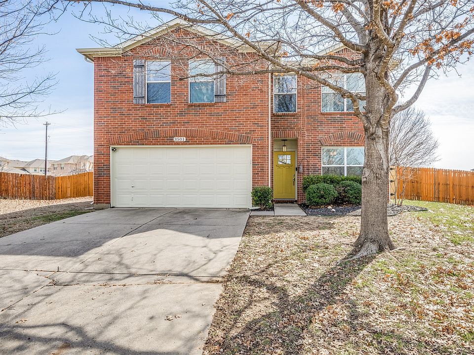 This stunning two-story home is a true gem showcasing stylish updates throughout. Nestled in a quiet and highly sought-after community, this spacious and open floor plan has abundant natural light, creating a warm and inviting atmosphere. The heart of this home is the beautifully appointed eat-in kitchen featuring an expansive island with a lower microwave, sleek quartz countertops, stainless steel appliances, tile backsplash, under-cabinet lighting, a farm sink, and a hooded vent. Modern light fixtures illuminate the entire home. The primary suite offers a true retreat complete with a large walk-in closet, and a luxurious ensuite bathroom featuring dual sinks, quartz countertops, and a newly remodeled oversized shower. LVP flooring flows throughout the first floor, complemented by tile in the bathrooms and utility room and plush new carpet upstairs. Elegant floating shelves accent the kitchen and living area with floating glass-front cabinets. This home also features a dedicated office perfect for working from home, a large bonus living area upstairs, and generously sized bedrooms. A new water heater was recently installed. So much is included and will stay with home; Whirlpool fridge, Samsung 75-inch curved TV and JBL soundbar, the Vizio soundbar in the primary bedroom, LG washer, Samsung dryer, curtains, and rods. Enhanced security with Performance 1 security system and three Ring cameras will provide additional peace of mind. The Tonal workout system is negotiable! Conveniently close to highways, UNT & Liberty Christian, this home offers easy access to various dining, shopping, and entertainment options. This home is priced to sell quickly and is truly move-in ready! Don't miss out on this incredible opportunity - schedule your showing today!