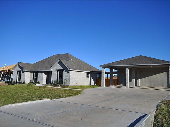 Beautiful New Cervelle Home in Pedregall subdivision in League City Plan 417 with a 3 car detached garage and a 3 car porte cohere out frontr on 10 ft walls with 9 ft. door. 16,875 sq. ft corner lot. The Master bedroom is open to Bedroom 4- use as exercise, nursery, private office. This home includes the standard open cell spray foam insulation, hi eff. Trane HVAC with chronotherm control and variable speed fan with a separate Aprilaire Dehumidifier in system. The kitchen features built in Self Cleaning oven, Microwave, Omegastone Palladio counters, gas cooktop, ceramic tile floors and splash. Home is plumbed with Pex piping and Manifold water distribution system. Master dual vanities, large shower. Very quiet area with easy access to I45 to Houston, Galveston and Space Center. Worth the time to see this beautiful Cervelle Home with fantastic garages and large lots. Tax rate is 2.11 with no MUD taxes. Large lot with plenty of room to roam.