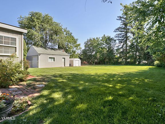 From the moment you drive in to the property, you will notice the solar panel charged electric gate to this completely fenced property, which is county living in the city. Get out of your car and see so much available parking. Should you be an entertainer, this could be the home for you. Enter the front door and see well maintained laminate flooring, everywhere except for new bedroom carpeting. Step to the left and into the kitchen and notice newer appliances, eating area in the kitchen, ample counter space and even a built in desk. walk through the kitchen and you will come to the formal dining area with built in hutch. From here you will see how large this open concept living/dining area is. Down the hall you will find 2 bedrooms, main bath, laundry room and primary bedroom w/bath. Everywhere you look, everything is move-in clean, and so well cared for. Step out the back door from the laundry/mud room, and you will find the patio/deck with privacy fence. Expansive yard with underground sprinklers and it's on Yakima City Irrigation. There is an oversized one-car garage with room for a shop and a separate garden shed. This home has so much to offer!