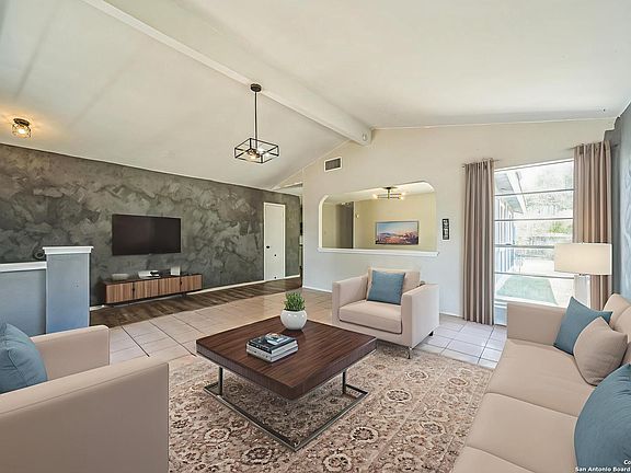 Welcome to the desirable Stone Ridge subdivision! This well-maintained 3-bedroom, 2-bath home features an open and spacious floor plan with high ceilings and abundant natural light. The kitchen offers ample cabinet space, sleek countertops, and a breakfast area that flows seamlessly into the living and dining rooms. The large primary suite includes dual closets and an en-suite bath with a double vanity and tub/shower combo. Two additional bedrooms are generously sized and share a full bath. Enjoy the large backyard with mature trees, privacy and chain-link fencing, and a storage shed. Additional features include a covered front patio and access to community amenities such as a pool, playground, walking trails, and a sports court. Conveniently located near Wurzbach Parkway, McAllister Park, Northern Hills Golf Course, and the San Antonio Airport. Don't miss this opportunity to own in a prime location with owner financing options!