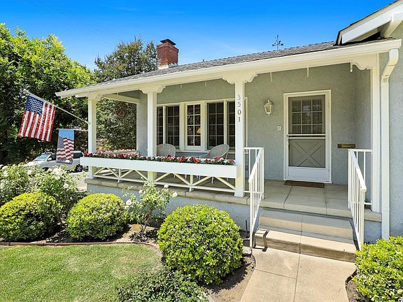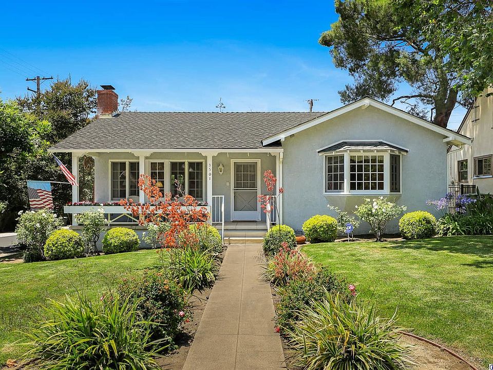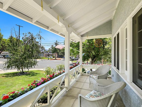 Wonderful Sparr Heights bright a cheery home. Enter front Dutch door into living room with cove ceiling, beautiful fireplace, wood floors, solar window shades,built-in entertainment cabinet and book shelves. Dining area with built-in corner cabinets and solar window shades. Large kitchen has solar tube lights, Corian counter tops,new built in microwave, generous cabinet space with lighting, room for table and chairs plus two garden windows and large closet for washer and dryer. Master bedroom with walk in closet, solar shades,and remodeled full bath with spa tub and extra large shower,built in hamper and linen cabinet. Second bedroom has a bay window with black out window shade, wood floor,fan and large closet. Dutch backdoor leads to retractable awning covered back porch that over looks yard with beautiful rose garden, large avocado tree and other fruit trees. Two car detached garage with Dutch door and loft for storage. Other features include central air and heating. Award winning schools in this neighborhood. More photos Monday