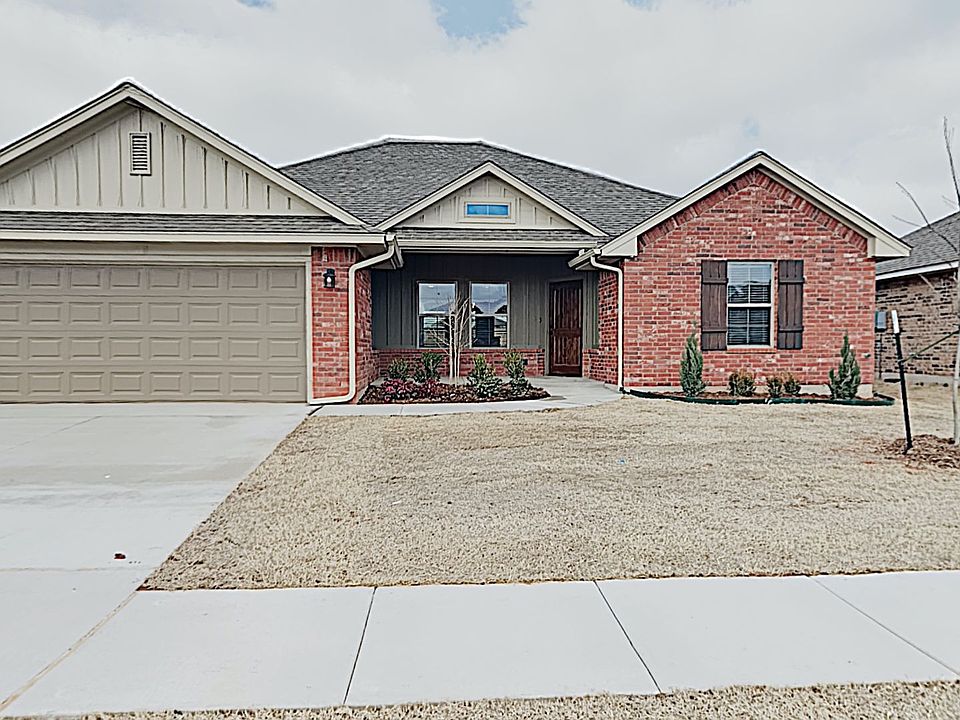 Welcome to this amazing 4 bed, 2 bath house located in the Mustang School District. This home boasts a modern and stylish design, perfect for those seeking a comfortable and convenient lifestyle. The spacious kitchen features granite countertops, a large island, and stainless steel appliances, making it a chef's dream. The open concept living room is enhanced by a cozy gas log fireplace, creating a warm and inviting atmosphere for gatherings with friends and family. The primary suite offers a large bathroom that features a jetted tub, double vanity, and step in shower and also has a huge walk-in closet. Step outside onto the covered back patio, where you can relax and enjoy the fresh air. With four bedrooms, there is plenty of space for everyone to have their own private retreat. Schedule a tour today and experience the beauty and charm of this amazing home!