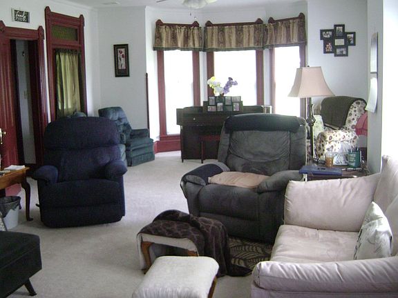 Victorian Style built in 1861. They many features include large eat in kitchen, large family room that has optional dining area. First floor bedroom and bath. Also first floor laundry and 1/2 bath. Wood floors under carpets. full basement with newer glass block windows and plenty of room in the 2 car attached garage for tools, etc. Large barn is 48 x 40 and storage building./shed is 48 x 26.Plenty of room for pool, garden, 4H projects. The improvements include: Siding, spouting, garage doors, kitchen, ist. floor laundry with lots of storage. plumbing and electric updates to include 200 amp. several double pane sashes.