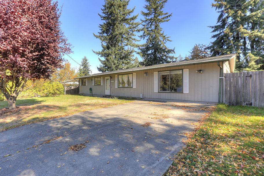FOUR bedrooms w/2 baths for under $260,000! This well-maintained 1 story home features a private master suite w/bath, closet & laundry room on one side of the house w/its own sep entrance, nicely updated bathrooms, water heater & roof are only a few years old, crown molding, slate tile entryway, built-in pantry, fully fenced, level yard w/firepit and outbuilding/shed, massive family room/bonus area w/wet bar, deck off back for entertaining and all just mins to shopping, schools & freeways!