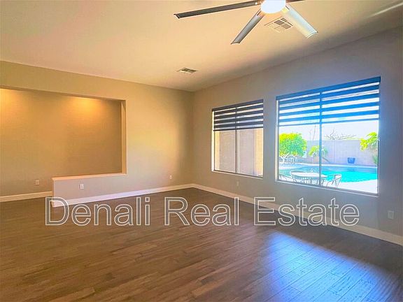 No Application Fees! Beautifully remodeled three bedroom plus den, two bathroom single level North Phoenix home located in the Tramoto community. This upgraded home features bamboo wood flooring throughout with no carpeting, upgraded baseboards, modern fixtures, ceiling fans in each room, upgraded window blinds, and soaring fifteen foot ceilings. Living spaces include a large open living room, a separate dining area, and a bonus room perfect for an office, den, or game room. The stunning kitchen includes granite countertops, a large Dolomite island, subway tile backsplash with accent wall, upgraded cabinets with extended pantry storage, soft close cabinetry, and upgraded appliances. Appliances include a chefs gas range, built-in wine refrigerator, microwave, dishwasher, refrigerator, and farmhouse sink. The oversized primary suite features direct access to the backyard through a private patio door, abundant natural light, a walk-in closet, dual sink vanity, garden tub, and a large remodeled step-in shower. The backyard is an entertainers dream with a covered patio, private pool with waterfall, fruit trees, putting green, extended cool decking, and mountain views. With a west-facing yard and no neighbor behind, this backyard is ideal for both relaxation and entertaining. A three car garage with built-in cabinets provides ample storage and parking. Washing machine and dryer are included along with a water softener.