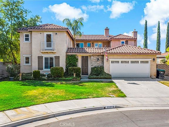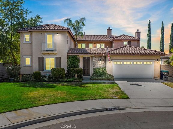 Welcome to 35018 Via Laguna, a stunning estate nestled at the end of a quiet cul-de-sac in Winchester being sold AS IS. This beautifully designed and unique home combines luxury, convenience, and thoughtful features, offering a perfect blend of comfort and class. This home's expansive layout is all centered around a serene courtyard with an outdoor living space with gas fireplace, foliage and a fountain. Perfect for outdoor entertaining or peacefully enjoying our unparalleled Souther California weather. Inside, the spacious living room features a second gas fireplace, creating a warm and inviting atmosphere. The whole house is wired with a built-in speaker system, allowing you to enjoy your favorite music throughout the home, including in the courtyard and backyard. The gourmet kitchen is just a little work away from perfection (Photos are prior to cabinet removal - see agent remarks). A chef's dream, boasting a 6-burner gas range, convection oven, butler’s pantry PLUS a large walk-in pantry for ample storage. The open-concept design seamlessly connects the kitchen to the living room, making it an ideal space for family gatherings and entertaining. This home offers one full bedroom with ensuite bathrooms on the first floor - a luxurious guest suite with its own walk-in closet and private full bath, providing comfort and privacy for guests or multi-generational living. An office space, also located on the first floor, includes a full bath and walk-in closet, offering flexibility as a home office or an additional separate living space. Upstairs, the master suite is a true retreat, an expansive space featuring a jetted soaking tub and beautifully tiled shower room in the ensuite bathroom and two large walk in closets, perfect for unwinding after a long day. Additional features include an extra half-bath on the first floor, built-in storage and shelving in the garage, and durable wood and block fencing. Situated with no neighbors behind or to the right, this home backs up to a community park and is the end unit in a cul-de-sac, providing privacy and scenic views. Don't miss your opportunity to own this remarkable home at 35018 Via Laguna. Schedule your private showing today and experience luxurious living in a tranquil setting.