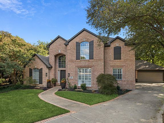 On a generous creek lot shaded by mature trees and situated on a private cul-de-sac, this well-maintained Richardson home within Plano ISD combines inviting living spaces, beautiful landscaping, and a serene outdoor retreat. Natural light fills the home through large windows throughout, and a welcoming foyer sets the tone, framed by two downstairs living areas and a formal dining room perfect for gatherings. The family room features a beautiful fireplace, creating a warm and inviting focal point.