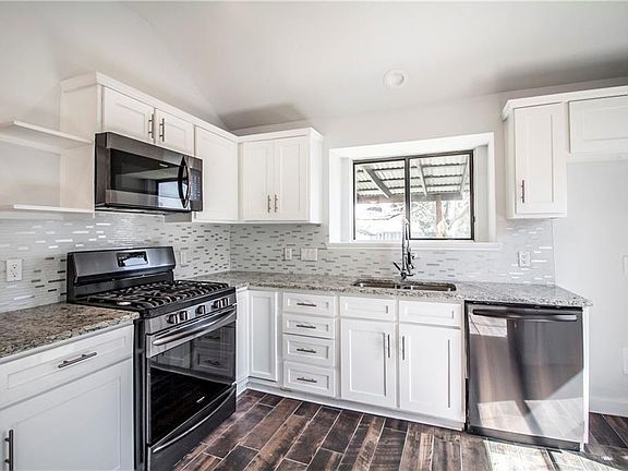 Looking for a beautiful home inside and out? You will love this stunning 3-bedroom, 2-bath remodeled home conveniently located near downtown Rowlett. Photos alone do not do justice to the bright open elegance, remarkable curb appeal, and spacious gourmet kitchen with new black stainless-steel appliances and ample granite countertop space that will exceed your cooking and entertaining needs. Unwind at the end of a long day in the luxurious master bathroom or by spending time outside enjoying the covered patio, mature trees, and newly sodded, landscaped yard. Durable wood-look tile floors, roof, and HVAC are new. All of this situated in a quiet neighborhood minutes from PGBT, shopping, and restaurants.