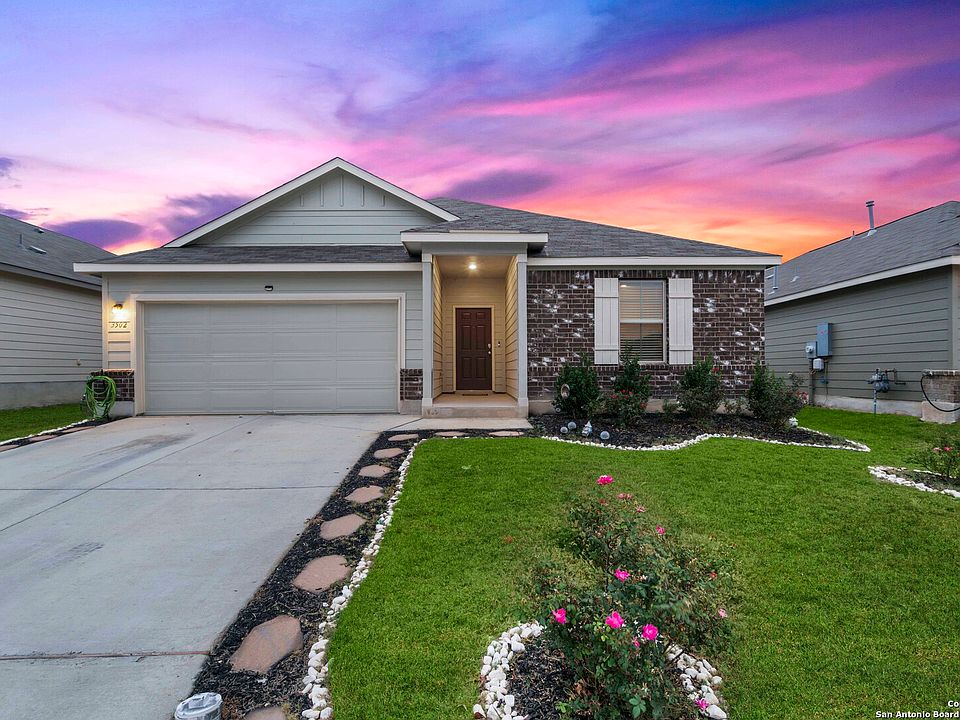 THIS BEAUTY WAS BUILT IN 2021! AN IMMACULATE THREE-BEDROOM, TWO-BATHROOM ONE-STORY HOME HAS GORGEOUS DESIGNER LUXURY VINYL FLOORING IN THE MAIN AREAS OF THE HOME, PREMIUM GRANITE KITCHEN COUNTERTOPS, A GREAT KITCHEN ISLAND, 42-INCH BEAUTIFUL KITCHEN CABINETRY AND AN SPLENDID FRONT YARD LANDSCAPING PACKAGE. MORE UPGRADES INCLUDE 10 FT SOARING ARCHITECTURAL CEILINGS, 5-PANEL MODERN DOORS, BAY WINDOW IN MASTER BEDROOM, ELEGANT GAS COOKING STOVE, STATE-OF-THE-ART WATER SOFTENER SYSTEM, AND WHOLE HOUSE WATER FILTRATION SYSTEM. TONS OF RECESS LIGHTING! LARGE MASTER BATHROOM WITH AN OASIS SUPER SHOWER WALK-IN SHOWER AND SPACIOUS WALK-IN MASTER CLOSET. NICE SIZE COVERED PATIO FOR TONS OF ENTERTAINING AND SUNSET WATCHING! LARGE BACKYARD WITH PLENTY OF SPACE BETWEEN YOU AND YOUR REAR NEIGHBORS. COME AND SEE THIS STUNNING HOME TODAY AND MAKE IT YOURS.