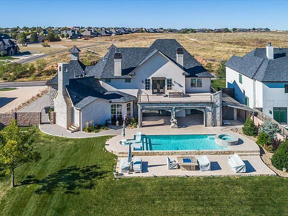 French Chateau Masterpiece with million-dollar view! This exquisite French Chateau style residence sits gracefully on 3/4 of an acre, backing up to a serene natural water way and private pond. The breath taking panoramic views from the main living area overlooking the sparkling pool and spa are truly one of a kind. The cobblestone paver circle driveway, custom limestone and brick exterior sets this estate apart. Every detail of this home showcases unmatched quality and craftsmanship from the French oak wood flooring to the intricate iron handrail on the staircase and the artful ceiling treatments throughout. The kitchen is a gourmet dream, featuring a La Cornefue gas range with a custom brass vent hood, Sub-Zero refrigerator and elegant finishes worthy of a fine Estate. Four fireplaces add warmth and charm to the living spaces including one in the luxurious primary suite with a private sitting room and balcony with hot tub to soak in the view! The primary bath is a spa retreat in itself offers marble and heated floors, soaking tub and a huge steam shower. Attention to every detail. Step outside to your outdoor entertaining paradise - complete with a kitchen, grill, fireplace and motorized see through shades for year round enjoyment. A rare offering - A true architectural work of art with million-dollar view!!!